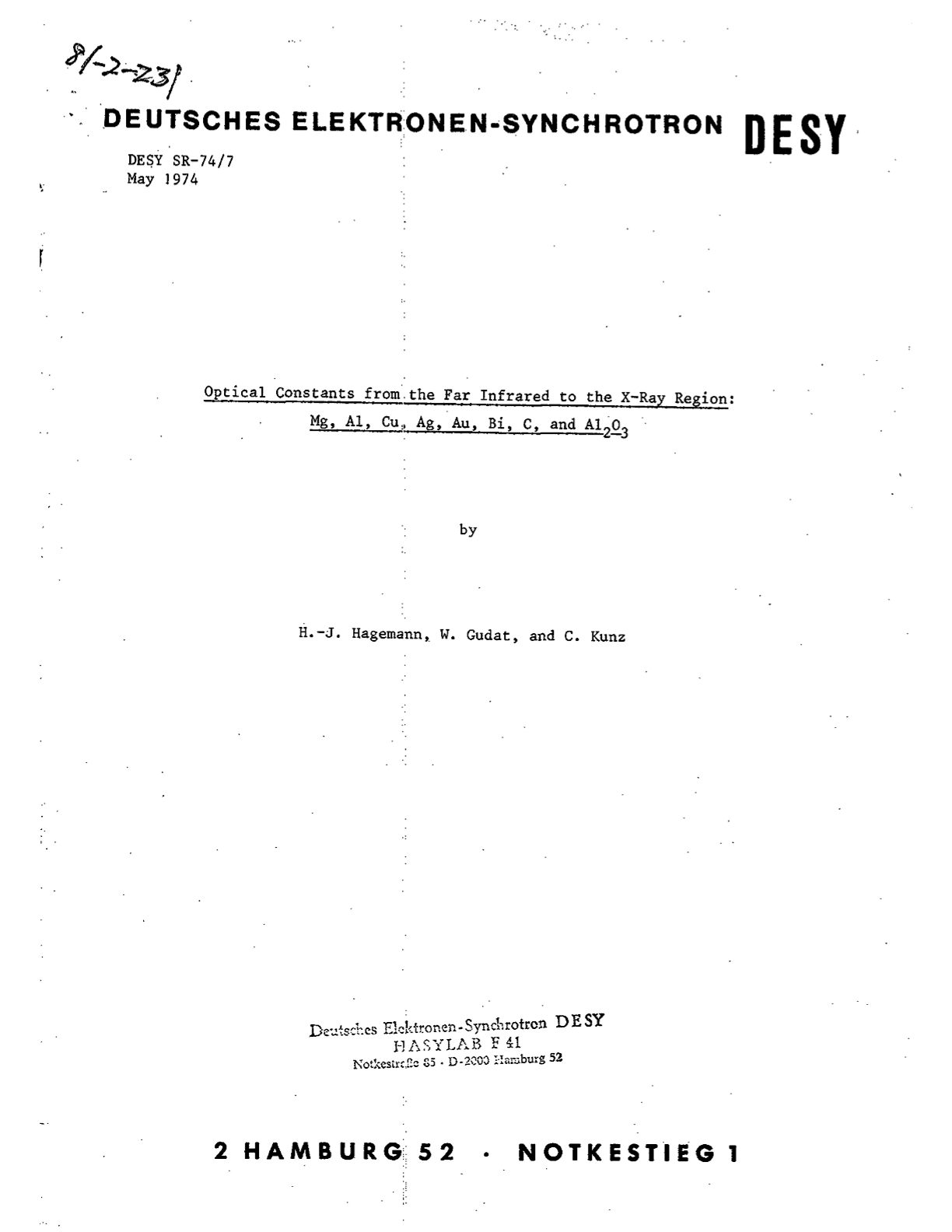 H. J. Hagemann, W. Gudat, and C. Kunz, J. Opt. Soc. Am. 65, 742 (1975); H.J. Hageman, W. Gudat, and C. Kunz,